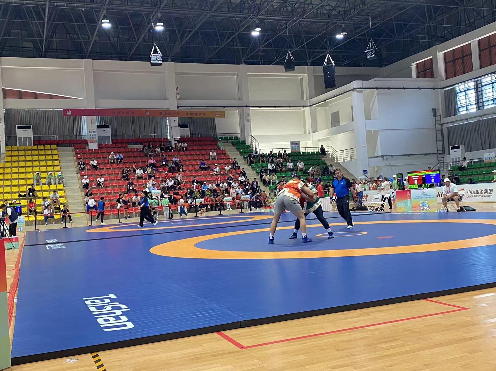 【概要描述】目前,2024年第十二届全国少数民族传统体育运动会正在如火如荼的进行中,各项赛事紧张有序展开,jn江南体育作为赛事器材供应商与服务商,见证了赛事的精彩举办,jn江南体育器材亦成为一大亮点。 值得关注的是,jn江南体育作为连续第三次服务全国少数民族传统体育运动会的国内知名体育企业,提供的高质量赛事器材再次受到高度称赞。 jn江南体育提供的摔跤器材性能优良,是名副其实的科技型产品,已多次服务于国际大型赛事,这次亮