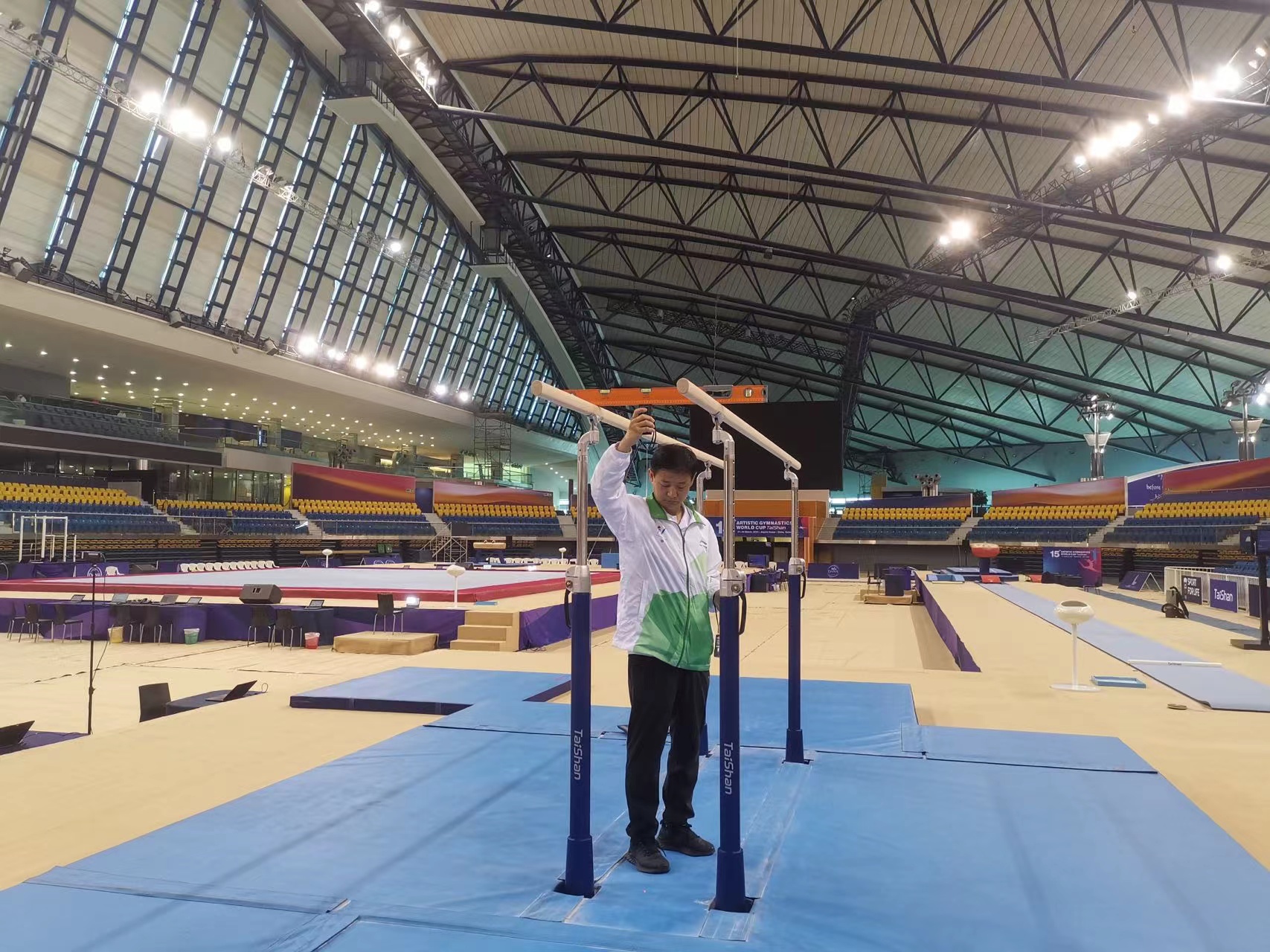 自主研发的碳纤维体操产品自首次亮相2021年世界体操锦标赛以来,经过两年多国内外赛事不断检验,在工艺和材料上不断完善升级,一次次的完美表现和带来的极致科技体验,已得到业界的高度认可,成功引领了世界体操运动的发展和变革。本次大赛,jn江南体育亦将不负众望,一如既往保持“零失误、零故障、零投诉”的优良传统,继续在国际体育舞台上,创造新精彩,演绎新传奇!